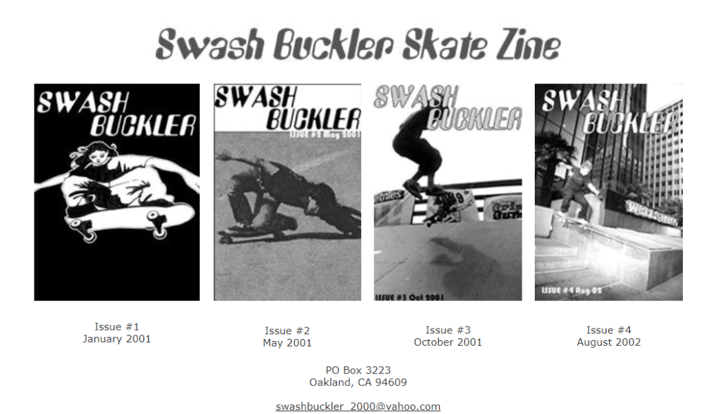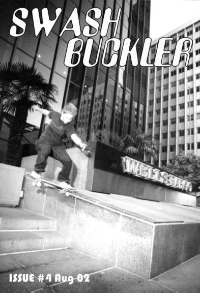 “In the vein of Villa Villa Cola (I never figured out what that one meant, but oh well) comes Swash Buckler, which pretty much sticks to the ladies side of skateboarding. This is issue #3 and it’s got a few interviews and coverage mostly from the All Girl Skate jam. Although it’s plagued by a few too many ‘headless skater’ shots, it also has some dynamite shit in there. Surely proving to be inspirational to aspiring young female skaters out there, I’m all for it. Send a buck or two to Swash Buckler, 461 43rd St, Oakland, CA 94609 or try swash_buckler2000@yahoo.com.”