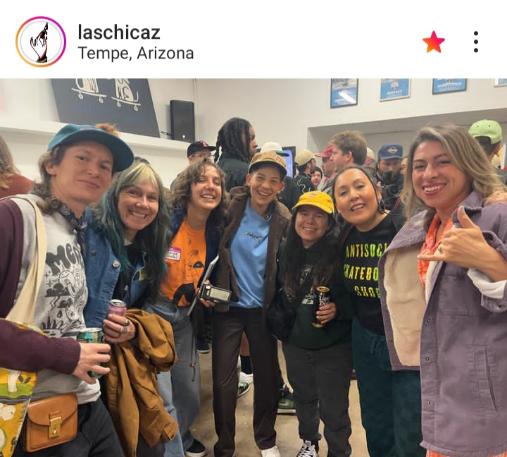 Here’s a few photos with wonderful folks like OG legend, Jean Rusen and Jessie Frietze-Armenta who is behind the super cool sustainable skate company called “Shred Cycle,” and were supportive during my talk! There was a fun group huddle at the Mess Mag launch which included an exhibit of Marbie Miller’s artwork (me, Jean, Romina Palmero and Isa Ostos Campo of Tutifruti who presented on collective trauma healing in skateboarding communities, Jessie, Rose Archie of Nations Skate Youth, who courageously presented during the “Sober Skaters” panel hosted by Kristin Ebeling, and badass, Natalie Krishna Das).