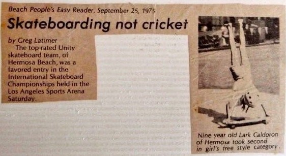 - Lark’s name appeared in the Fall 1975 issue of Skateboarder, placing first in slalom at the 1st Annual Southern California skateboard championships at Orange County Fairgrounds, with Jennifer Dimon in 2nd.