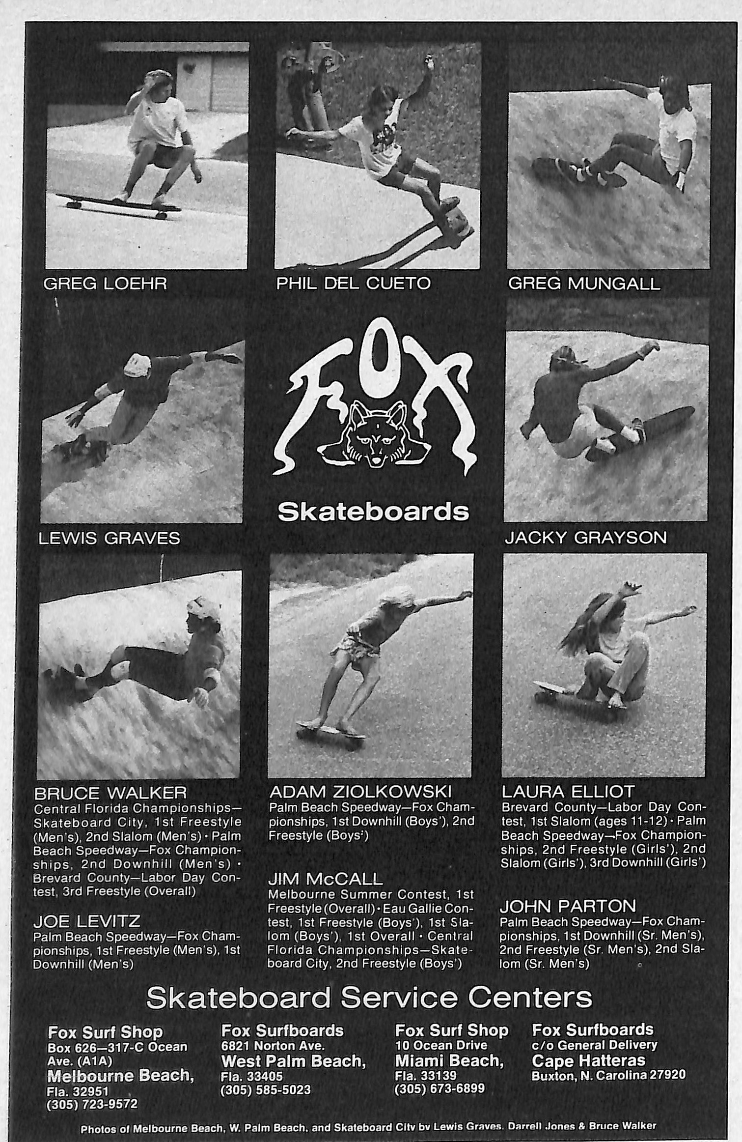- And in a Florida publication called Wave Rider (No. 2 Winter 1976), Laura was again celebrated by her sponsor Fox skateboards.