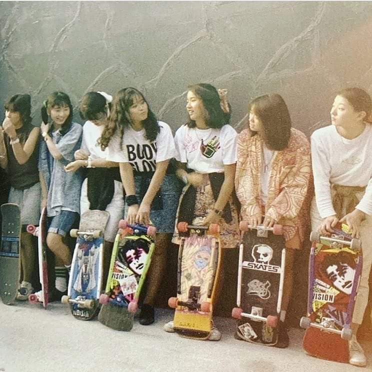 I know that Japan was frequented by pro American skateboarders in the 1970s, and I have one awesome photo of a crew of Japanese women in the 1980s, but still little detail.