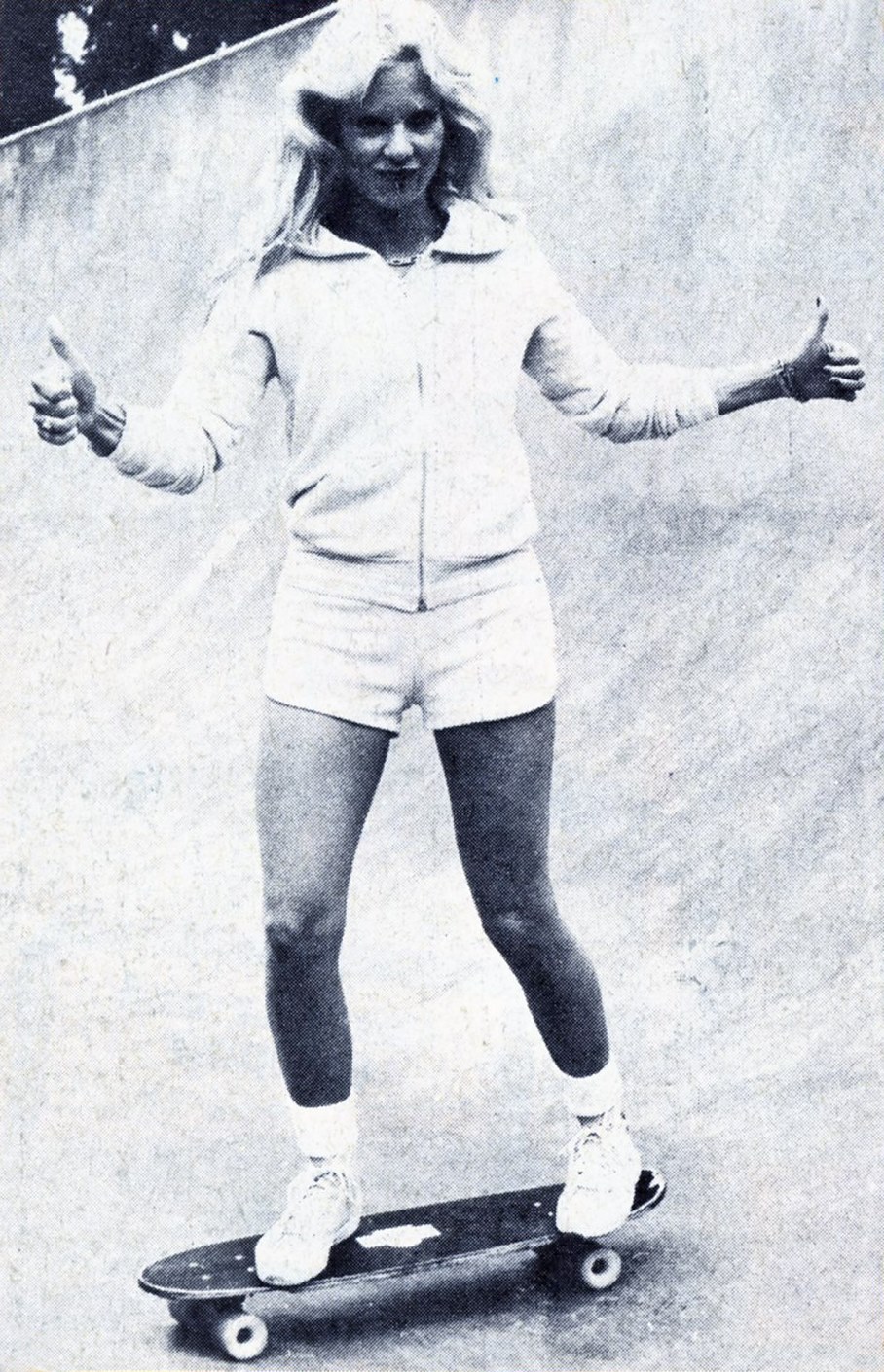 Skateboarding was hot stuff, and literally the day before Sylvie’s photos came out Madleen Kane (Swedish model and disco singer) was on the cover of a French magazine called Chez Nous posing on a skateboard – June 15, 1978.