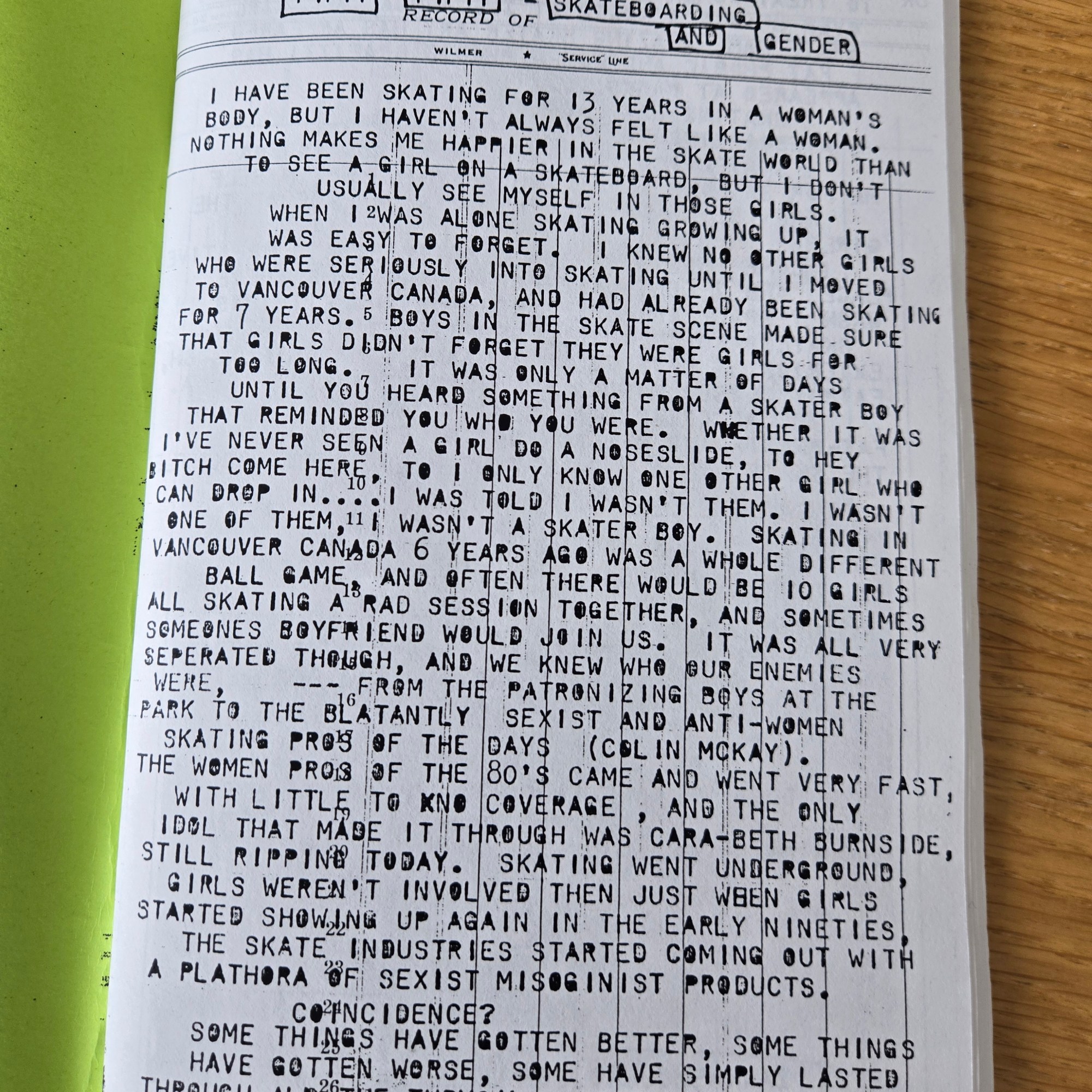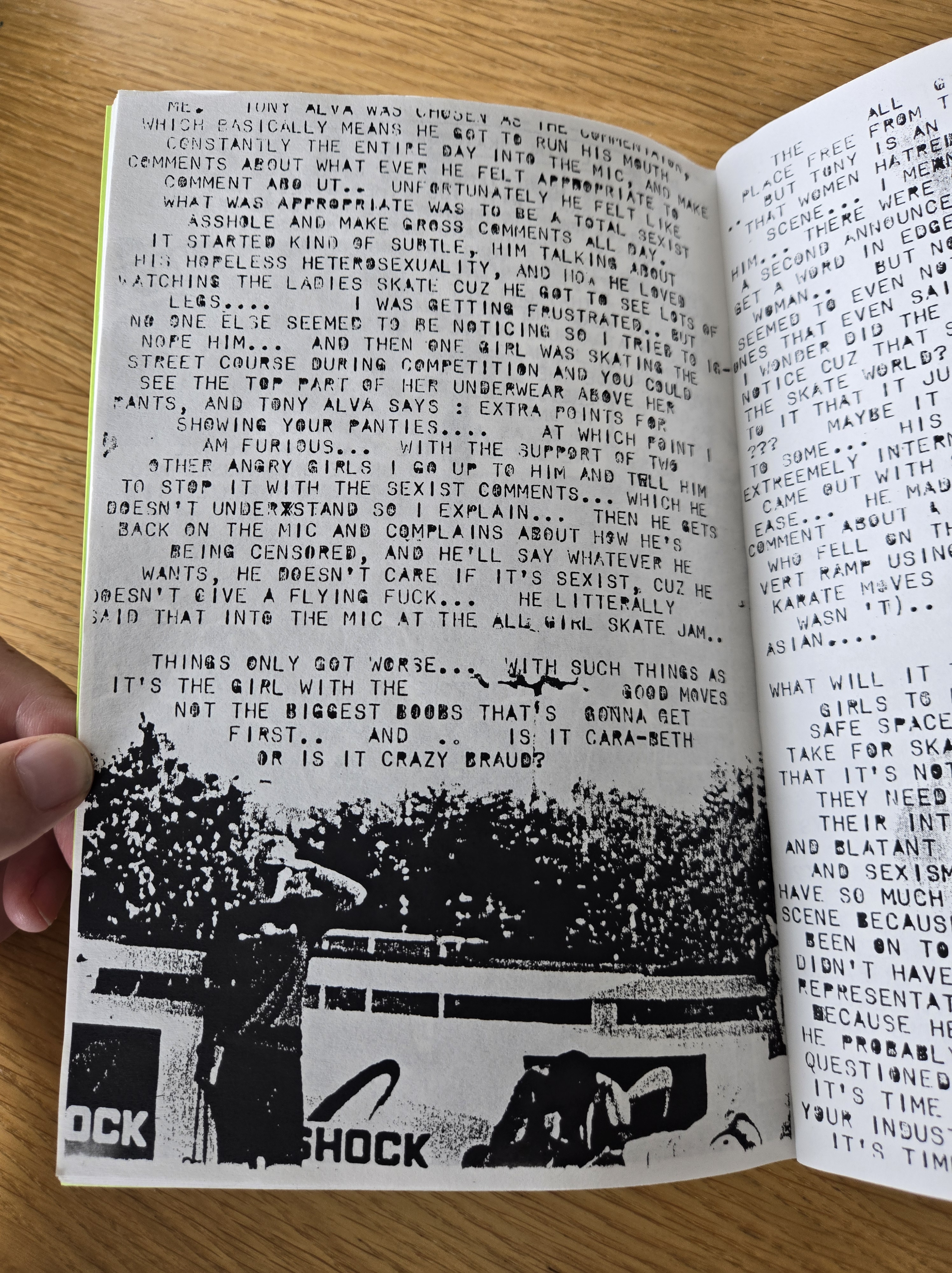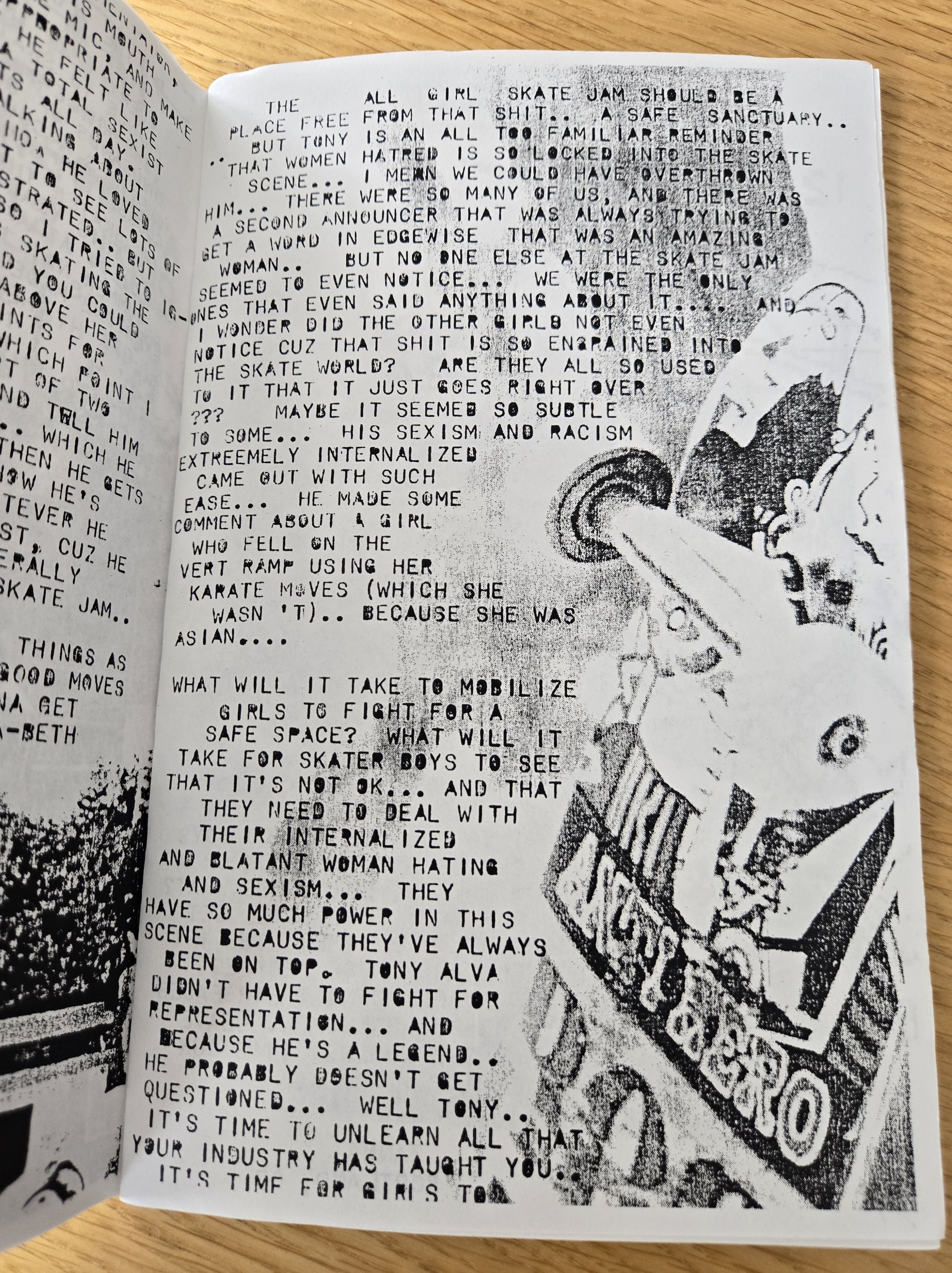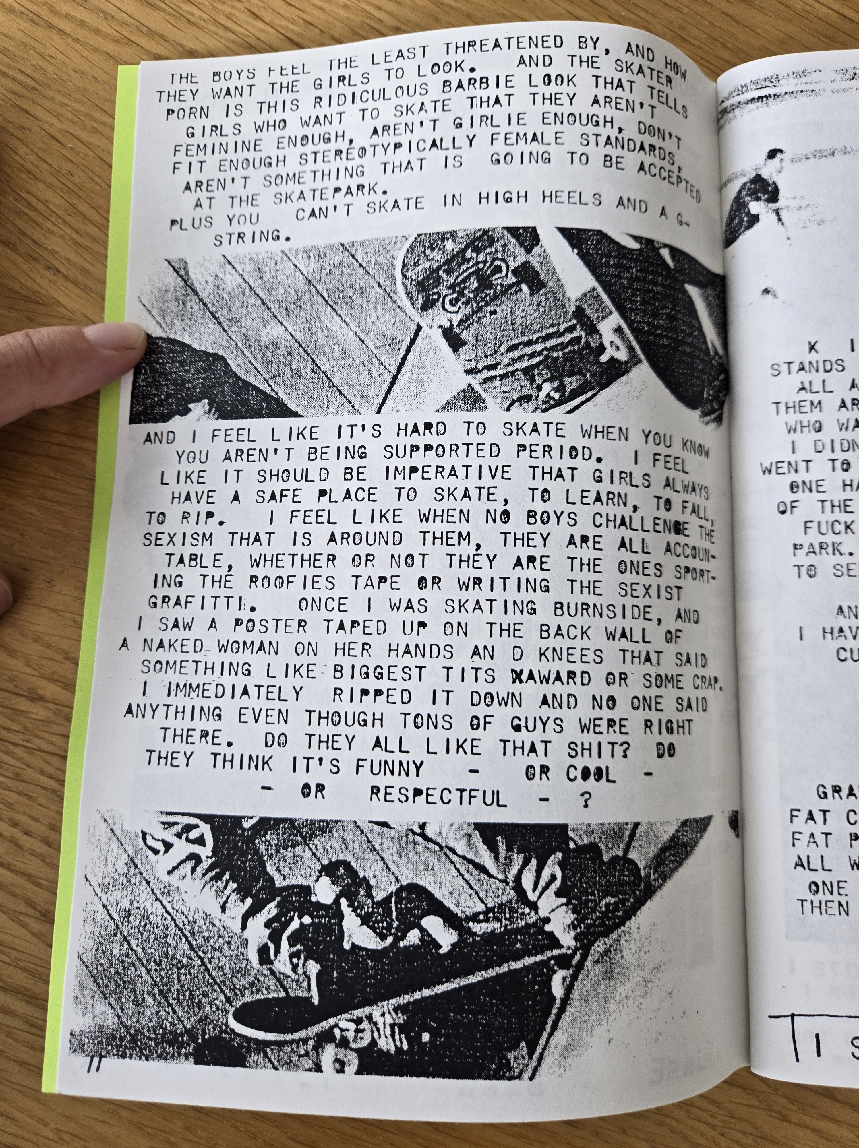 On the very first page, Zanna highlighted a scathing letter from the Mailbox page of Thrasher from August 1999 (issue #223) that condemned women skaters, in particular the Rookie team.