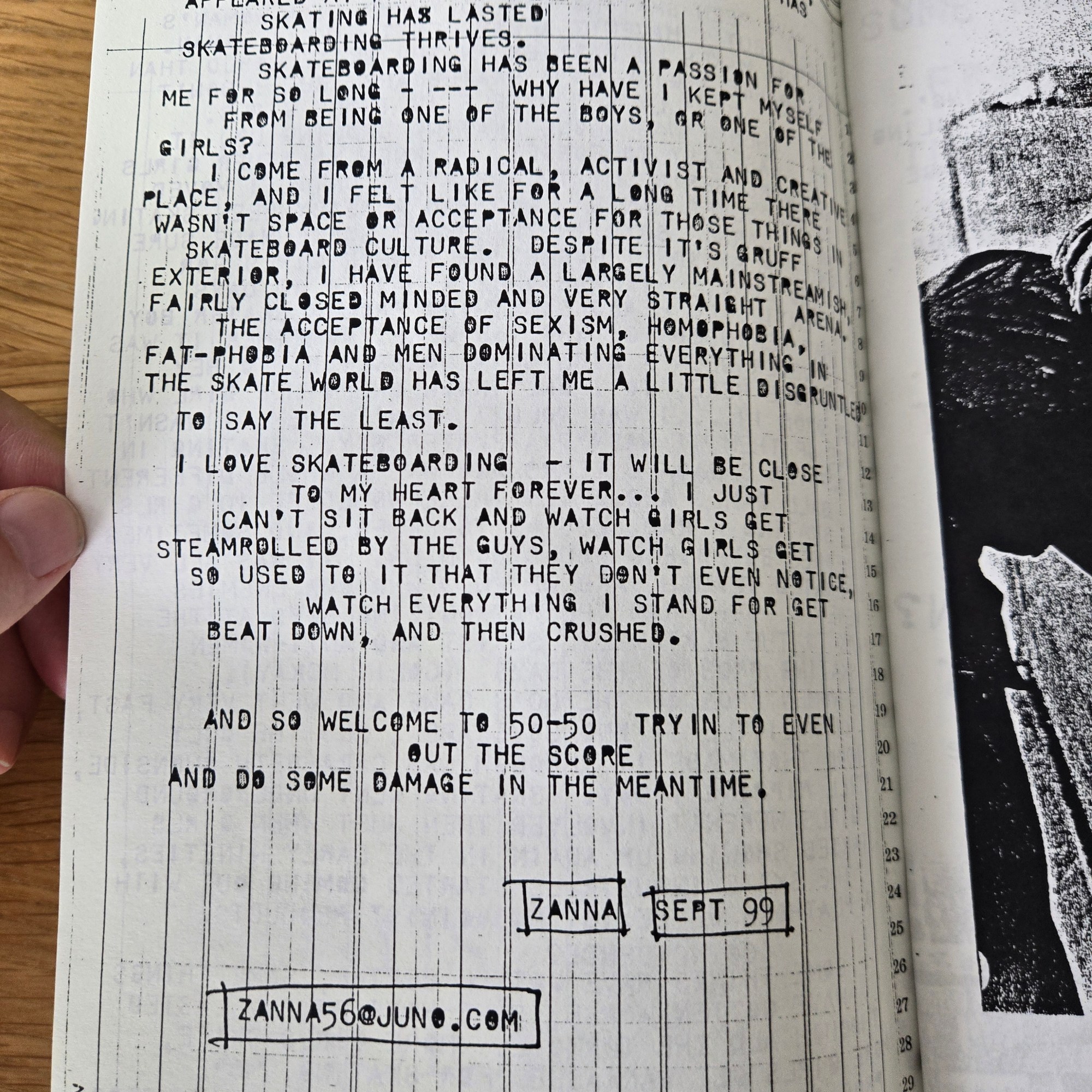 50-50 Skate Zine: Skateboarding and Gender by Zanna of Portland, Oregon came out in September 1999 and was 54 pages in length full of wisdom, rage, activism, insight and skateboarding!