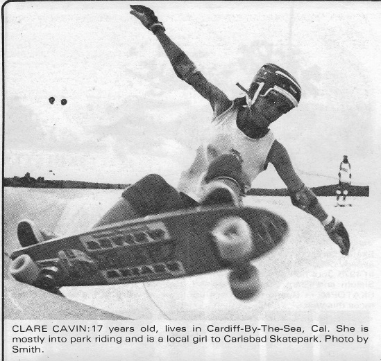 Claire Glavin (St. James) was originally in my mystery section, but thanks to her friend Judith Cohen we connected and had a conversation on April 11, 2024. I was grateful for the introduction because in the June 1978 issue of the National Skateboard Review, in the Women’s Special Feature Claire’s name was misspelled and labeled as “Clare Cavin” under a photo of her from the Carlsbad skatepark. Claire and Judith had had a photo shoot with Lance Smith, and the caption explains that she was 17 years old and living in Cardiff-By-The Sea, CA.