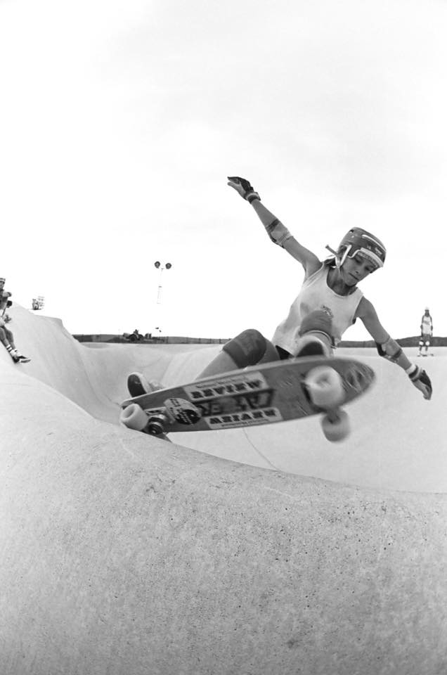 Claire was also sponsored by Caster Skateboards (a 1970s company best known for being represented by pro skater, Tom “Wally” Inouye), although the “only thing I remember about that was getting free boards and Curtis Hesselgrave talking about learning to fall.” Another friend, whom Claire was grateful for was Brad Standlund, “who used to pick me up on his way to different skateparks. Great memories.”
