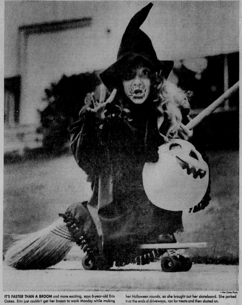 The heading says, “It’s Faster Than a Broom” and apparently Erin would skate from house to house, parked it at the end of driveways, ran in for treats and skated on. Special shout out to Jeff Cole in Vancouver for the heads up!!!