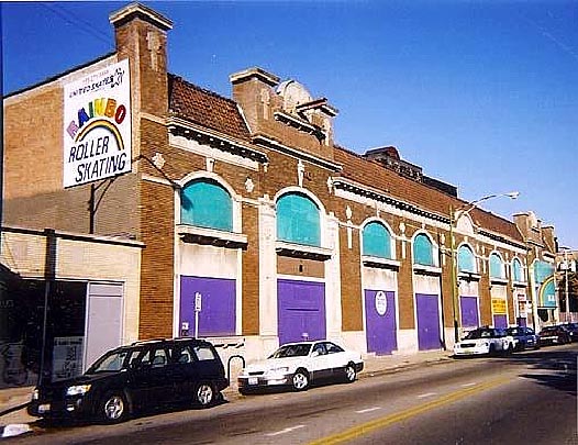 The site was most widely remembered as an ice-skating and roller-skating rink, even showcasing wrestling matches for a time! The section of the building that became the music venue (Kinetic Playground) was originally the Rainbo Gardens ballroom and featured a wide range of musicians from B.B. King to Led Zeppelin, Canned Heat, Janis Joplin, Fleetwood Mac, Grateful Dead, Jethro Tull, The Who, The Animals, and even Fugazi. Sadly, the building was demolished in November 2003 and became a condominium – The Rainbo Village. There’s a Flickr album showing the final days of the Rainbo as a roller-skating rink.