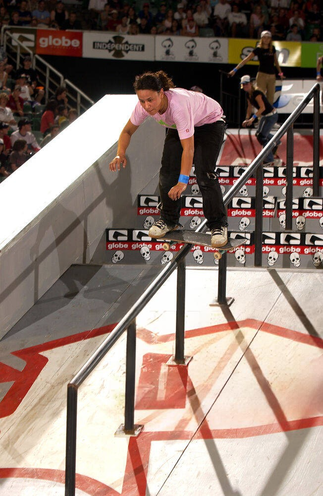 It turned out that 2005 was the last year that the Globe World Cup was hosted, with a contest called “The Global Assault” in 2006 being the final skateboarding event at Rod Laver Arena. It was an end of an era. Monica said, “I can really map out my years of skateboarding with these events because it’s been an annual thing and I can think about what I’ve done in the years leading up to that, or I can tell if I’ve progressed in a year because I can remember what I did last year in the contest. The competition’s not that important to me, but it’s definitely important to me to see my friends every year and to go travel and just have fun skateboarding.”