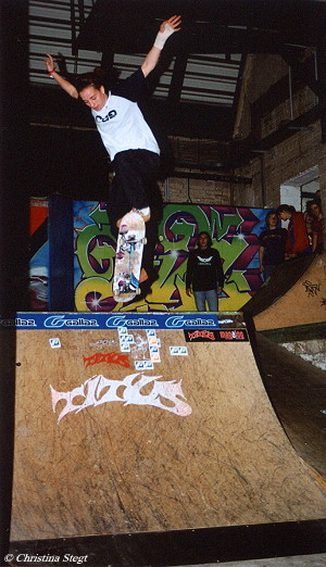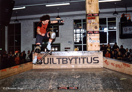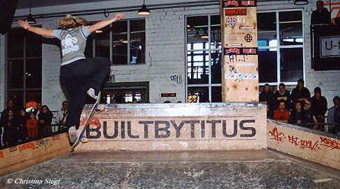 A similar gathering was hosted on November 23, 2002, but in Munster, Germany. Chrissie Stegt took a few photos to capture the energy, which included Karen Schirm (Germany), Franzi Stolz (Switzerland), Louisa Menke (Netherlands / Algeria), who was the first European female skater with a pro board, and some locals like Rodi and Toska.