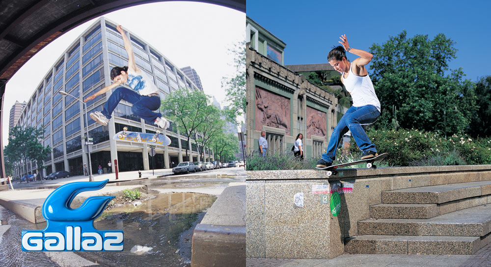 Ianire Elorriaga, the Basque skater from Bakio who won the European Championships six times between 2003 and 2010 was picked up by Gallaz. And when they offered a Gallaz Skate Jam in Anglet, France in 2003, Ianire took first place for street. Patiane Freitas, the kickass street skater from Brazil, was also brought on the team after competing in the 2003 Gallaz Skate Jam in Munster, Germany. Other sponsored riders of note included Sasha LaRochelle (U.S.), Sophie Poppe (Belgium), Stacey Roper (New Zealand) and Steffi Weiss (Germany).