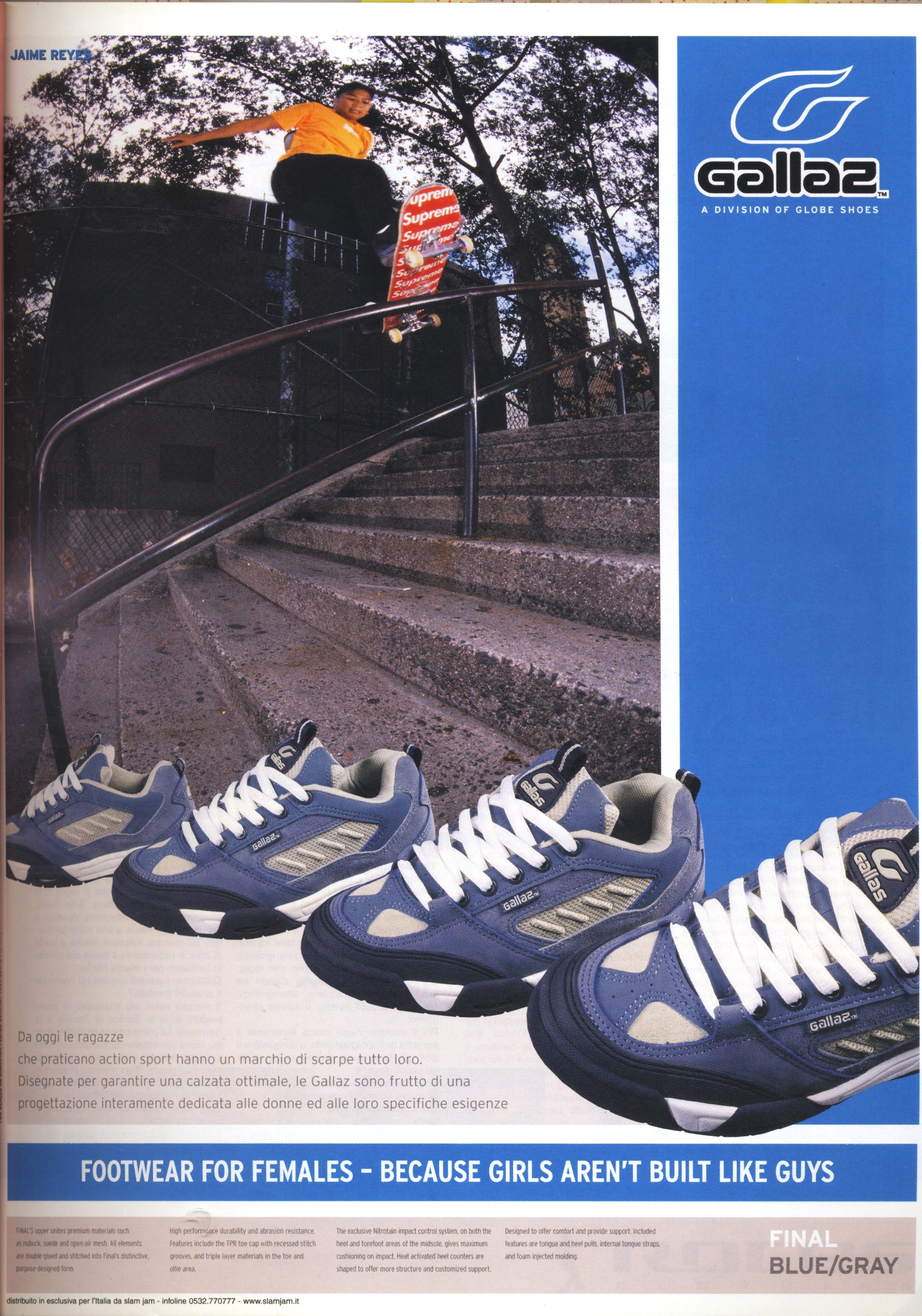 We have female skateboarders of Australia in the late 1990s and early 2000s to thank for the launch of the skateboard shoe brand, Gallaz, which was owned by Globe Industries.
