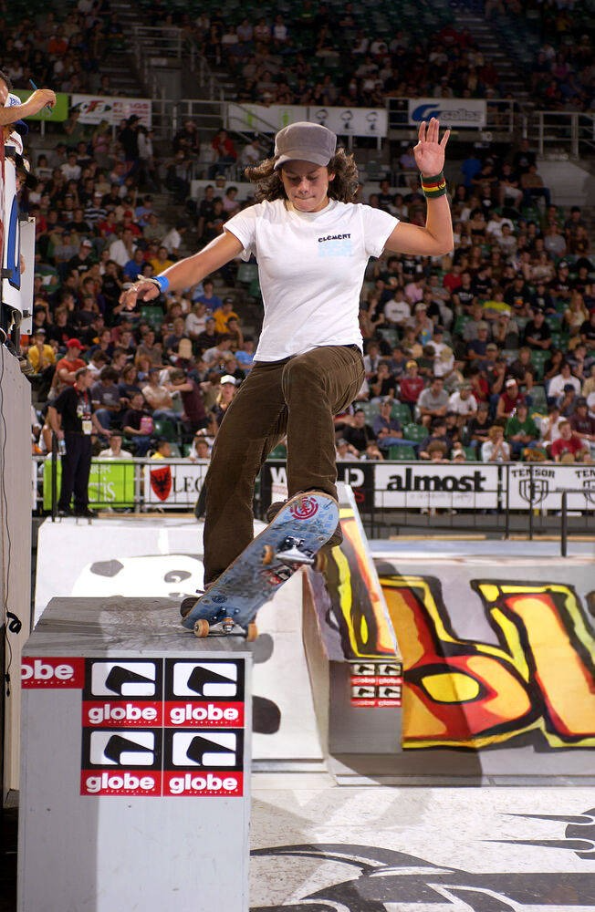 The annual Gallaz / Globe World Cup at the Rod Laver Arena in Melbourne become a key event for competitive skateboarders to prove themselves in front of a massive audience. In 2002, there were 18,000 spectators in attendance. Monica Shaw recalled that, “2002 was the first year that the contest had gone international, and also the biggest prize in women’s skateboarding, so it was a big deal. There was a car and some money [$6000]. And the course was like nothing else I’d ever skated because it was just huge with lights and logos on it.”