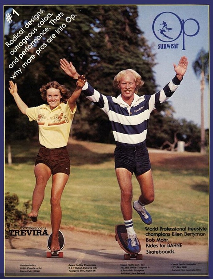 This photo of Ellen and Bob is from their special day in 1977 taking home some massive trophies, and then in 1978 for an Op sunwear advertisement:
