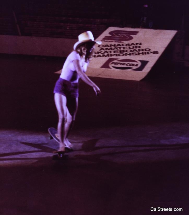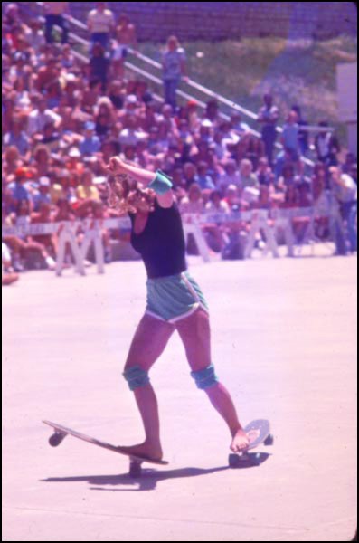 Photos: Oceanside Pro-Am 1978 by Spot and Jim Goodrich. El is skating for Alley Cat and the new rules required her to wear safety gear. The knee pads were custom made by June Postal.