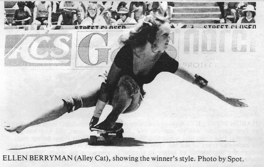 The article was written by her sister who shared how El was 16 and had only been skating for less than a year but already racking up contest wins, admiration from spectators and sponsors. Cindy also noted that Ellen was likely the first person (male or female) to perform the spider and the headstand into a scorpion – freestyle moves rooted in gymnastics.