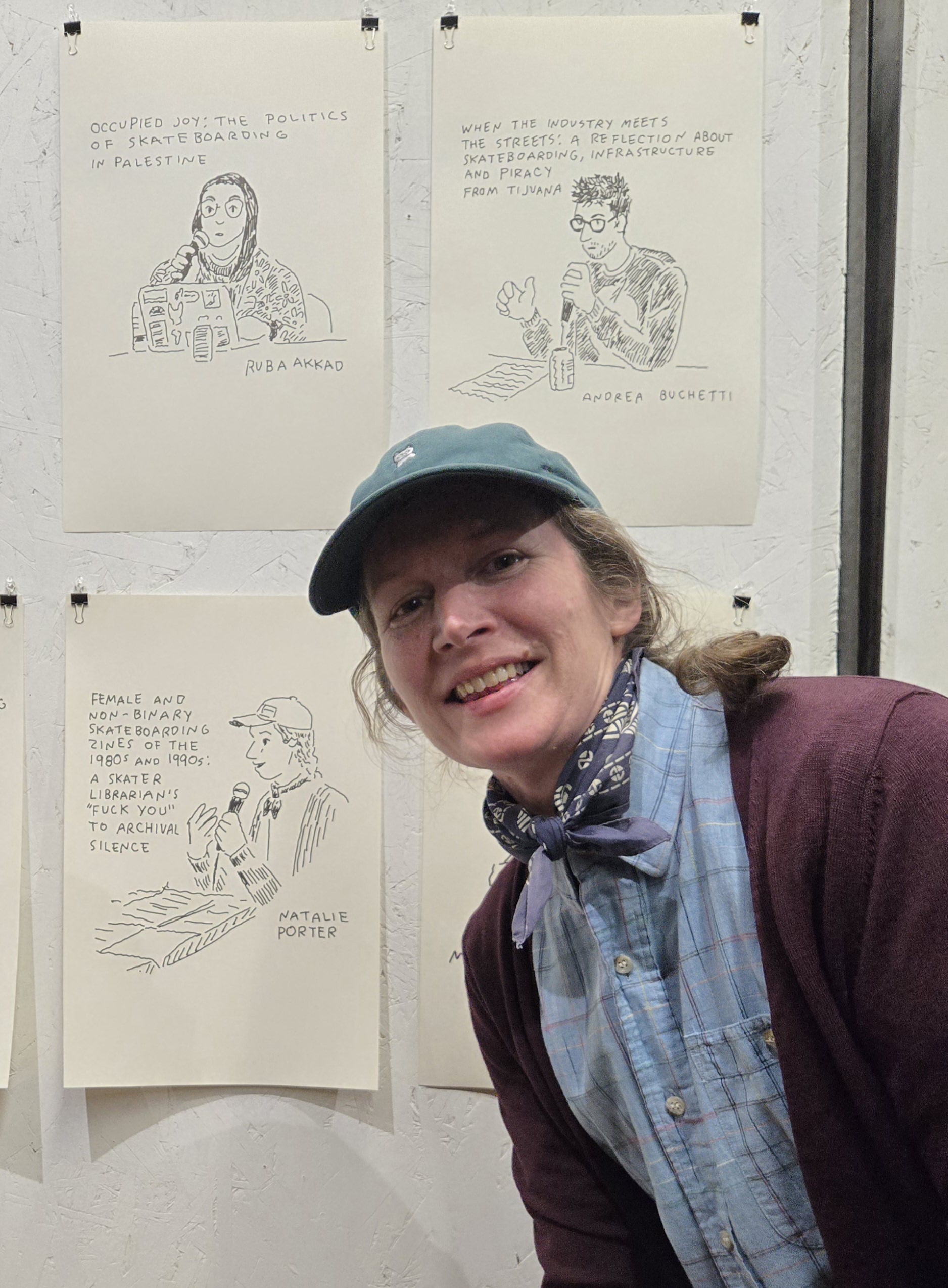 Upon arriving at the airport, Jean Rusen (aka Calamity Jean) kindly offered to pick me up, along with my Airbnb roomie, the fabulous Jessie Van Roechoudt of Mess Skate Mag / Adidas who was also on my panel called “Does skateboarding need journalism?” The Airbnb was ideal, and we were joined by Sophie Yanow, the graphic novelist whom I met in 2024, and Kava Vasquez, co-founder of Bronx Girls Skate and Program Manager at the Harold Hunter Foundation, who blew some minds with their wisdom during Kristin Ebeling’s panel called “The Outsiders: unconventional professionals.” And then, later in the weekend, Ashley Rehfeld crashed on the couch, a long-time SF skater and marketing strategist who presented an awesome paper, posing the question “Are Legacy Brands Killing the Culture?” and delivered some pseudo “Oscar” awards on the Saturday night.