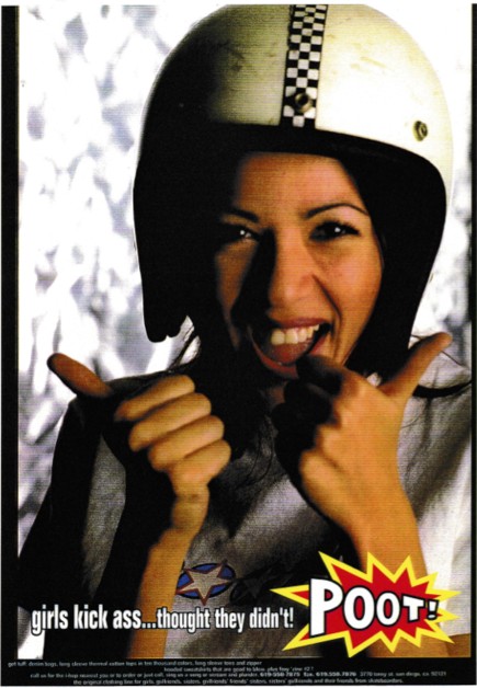 The Poot! Girls Kick Ass ad appeared in TransWorld magazine (July 1996 p145). Keva Marie regarded it as a statement of solidarity.