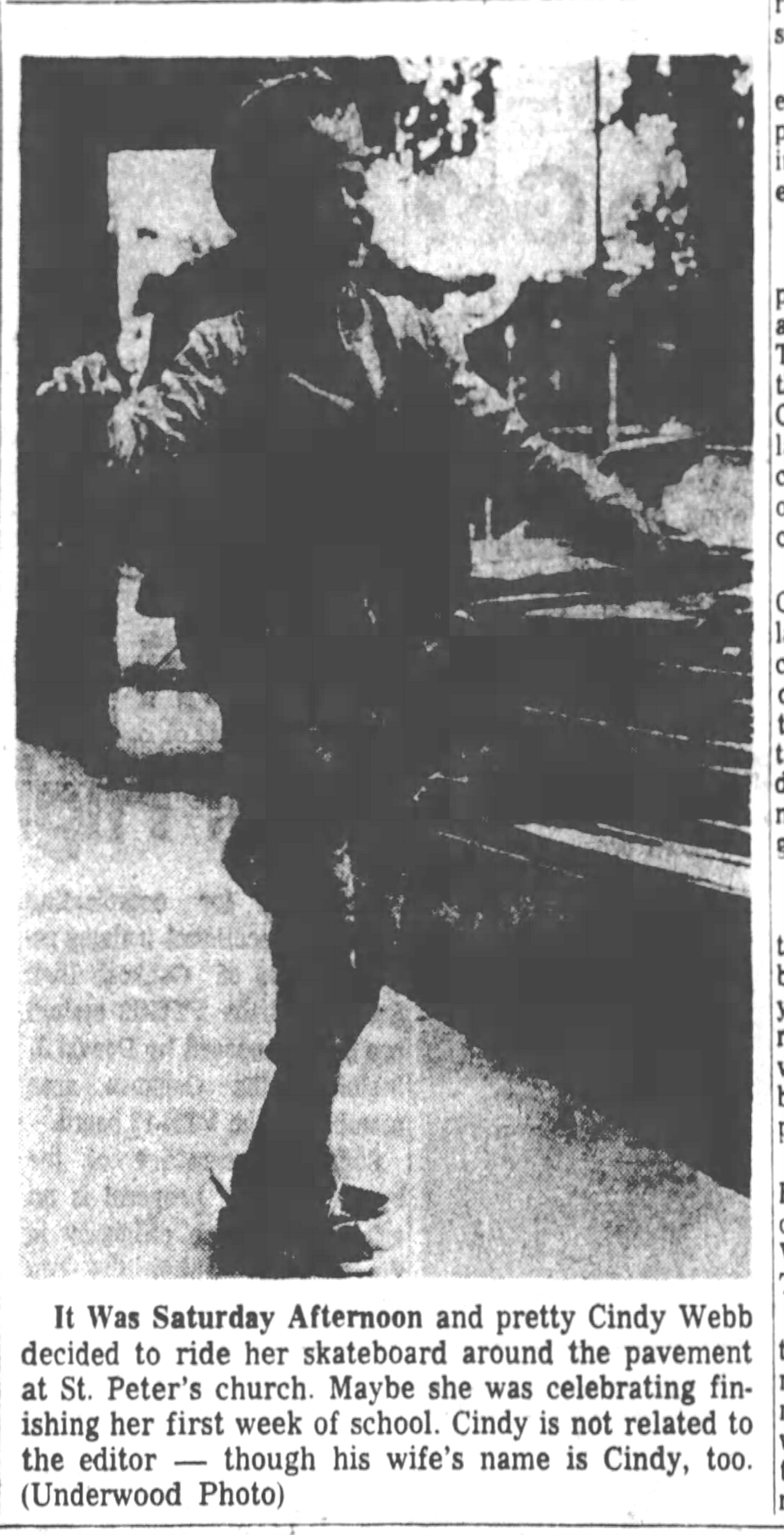 - Cindy Webb of Oshkosh, Wisconsin, goes for a ride on September 8, 1968, documented in the Sunday Times. The Editor clarifies that Cindy is not a relation, nor his wife of the same name! Haha.