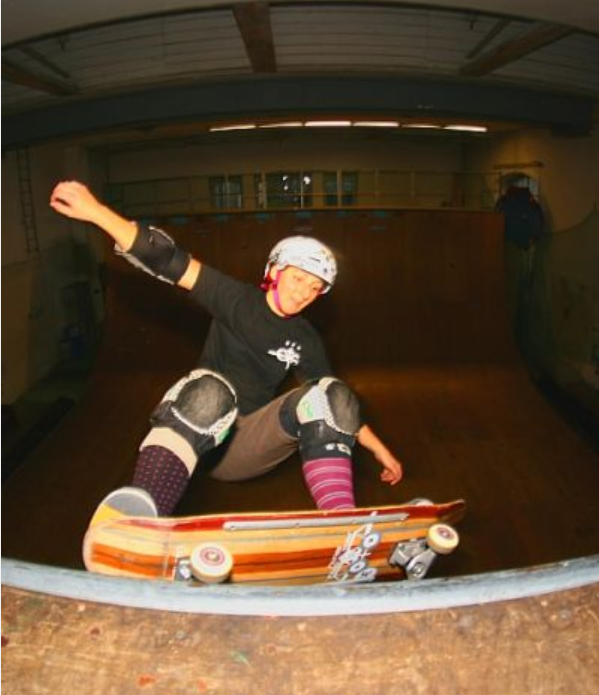 Franzi recalled how a local skateshop offered a skateboarding workshop in 1995 for new skaters. “It was a bit easier for me to try skateboarding that evening because I wasn’t the only girl or the only beginner. That night I learned how to do an ollie, which is an important basic trick,” and within three hours she could actually get some pop! Unfortunately, she didn’t have her own board and her local streets were impossible to skate on, so her dreams were paused. At the end of 1996, Franzi moved to Thun, Switzerland for a new job, and took up skateboarding again at the “Rollorama” skate hall in 1997, focusing on mini-ramp until 1998, when she ventured over to the vert ramp!