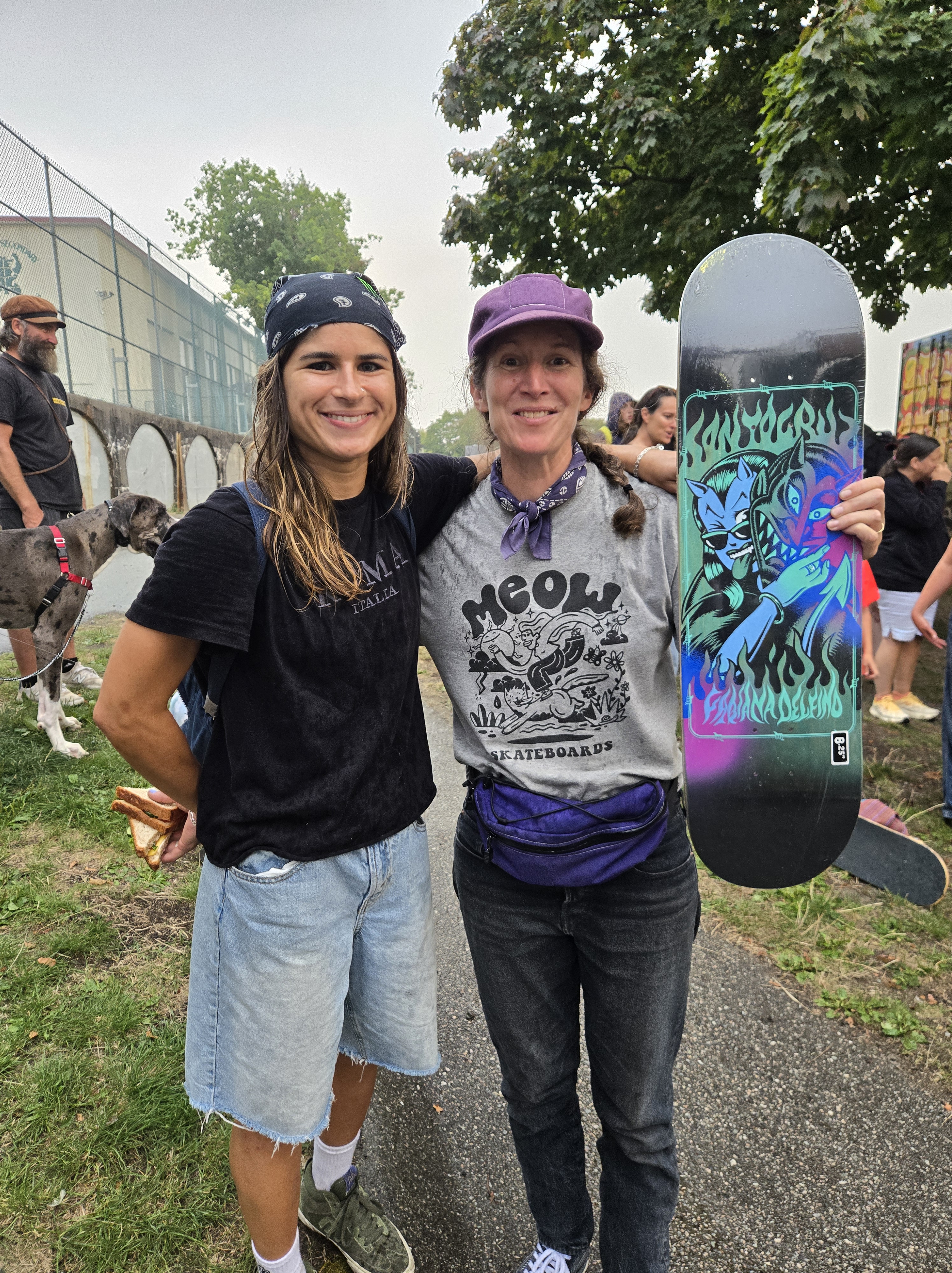 I ended up entering the 40-plus category at Britannia Courts and came 2nd out of 4. Woohoo! I can’t say it was my best performance, but I managed to ride out of some BS boardslides on the parking divider and a variety of other dorky tricks. And then, I lucked out in the prize draw, receiving the board that Fabiana Delfino donated. Michelle Pezel took a few photos to capture the magic!