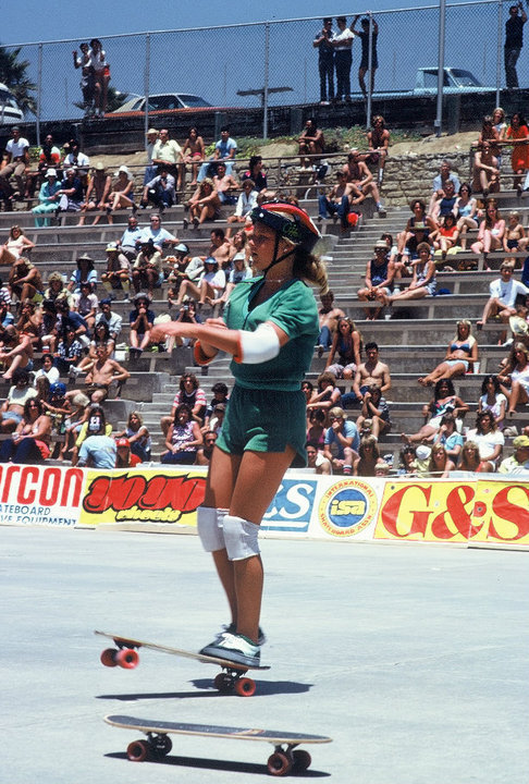She also competed at the Thousand Oaks Contest, sponsored by the Aquanetics Surf Shop, placing 4th behind Kerry Cooper, Becky Martinez, and Kym Milburn. The October 1976 issue of National Skateboard Review noted that there were over one hundred entries, as Erbes Road was a long, isolated stretch and centrally located, appealing to skaters from northern and southern California.