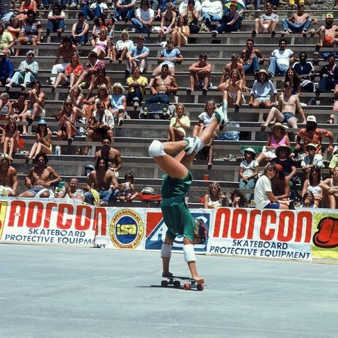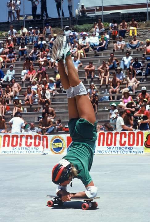 At the 2nd Annual Amateur Freestyle contest in Oceanside on July 11, 1976 there were 2000 spectators according to the National Skateboard Review (September 1976) and at 13 years old, Lynnette came 3rd in the “Girls Open Class” with Kym Milburn (15) taking the win, and Diane Patterson (14) in 2nd.