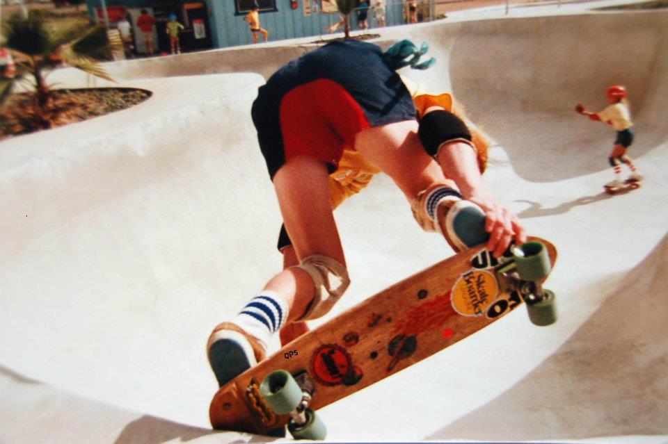 Lynnette’s older brother was Robert “Bobby” Fraas, seen here performing a “gorilla grip,” enjoying Spring Valley (Skateboard Heaven) skatepark with Lynnette along for the ride, and skating the Flower Bowl, taken by David DPS Paul. I imagine he was a big influence for Lynnette.