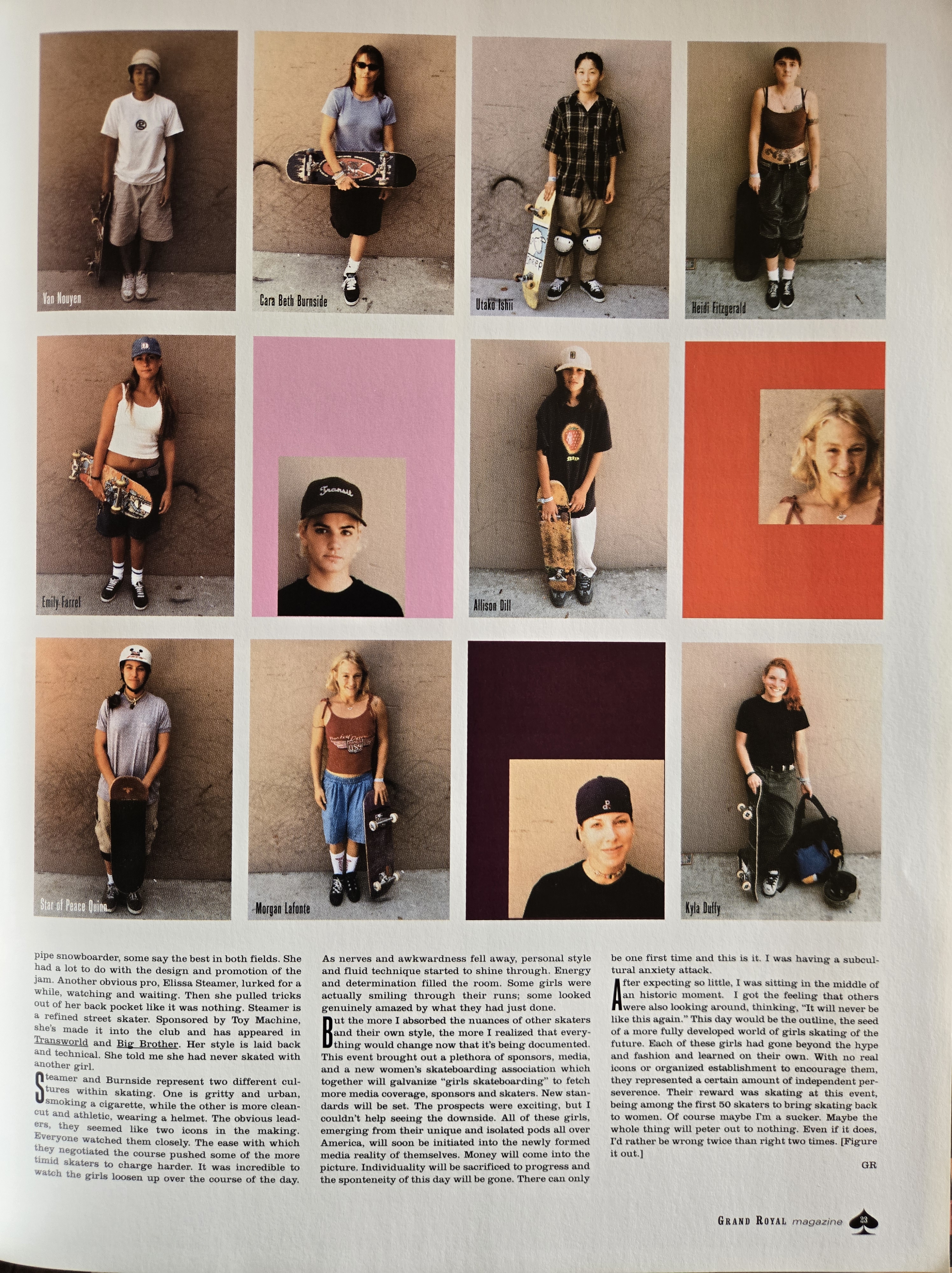 Grand Royal magazine (No. 6, 1997), which was based around the L.A. vanity record label set up in 1992 by the Beastie Boys, also stepped up! The two-page article was written by Susanna Howe and included portraits of some of the participants. The coverage completely validated Patty’s vision and gave some perspective on who these girls were.