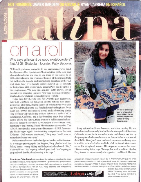 - Lannes, Xavier. “Interview with Patty Segovia, creator of All Girl Skate Jam.”I Skate Therefore I Am (November 2, 2011).