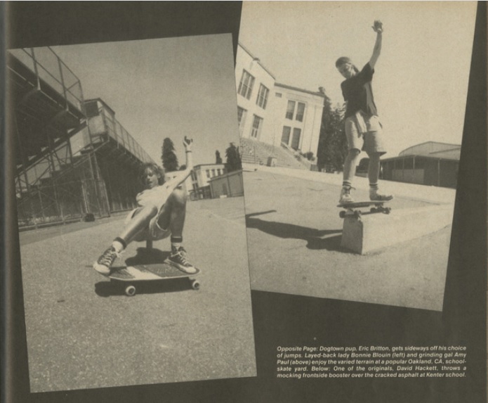 As well, the fact that Jane appeared twenty years later, when the male-dominated industry never acknowledged the prevalence of women in the 1960s and 1970s, this small image was exceptional. In 1988, Bonnie Blouin had her “Skater’s Edge” column in Thrasher but in the 13 issues that year (including the Collector’s issue) the only photos of women skating besides Jane appeared in the May 1988 issue of Bonnie and her friend, Amy Paul. Brutal.