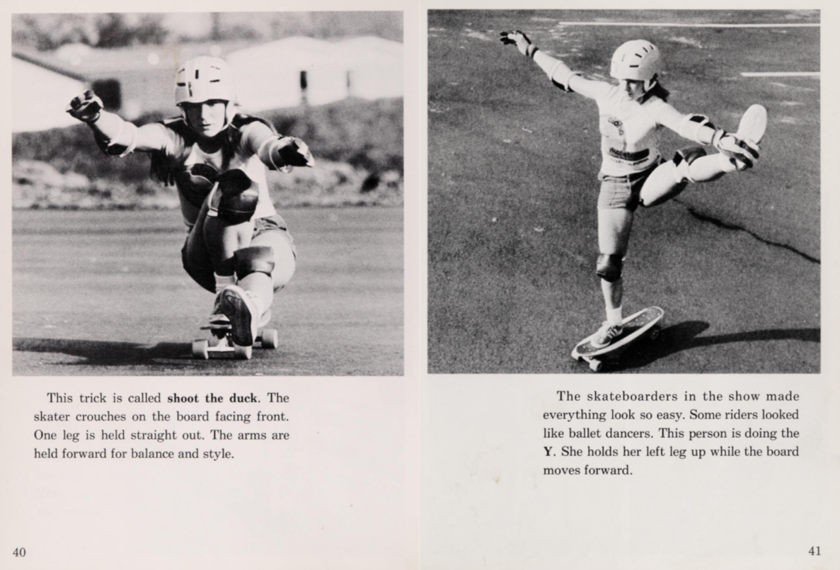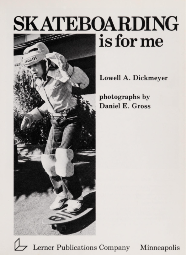 I’ve been thoroughly enjoying the variety of digitized 1970s skateboarding books on the Internet Archive, including Skateboarding is For Me (1978 Lerner Publications) by Lowell A. Dickmeyer with photos by Daniel E. Gross. I had briefly flipped through the book in the hour before launching my book at Antisocial Skateshop, since it’s part of Michelle Pezel’s collection, and was just delighted by it so it was great to find the vintage book readily available online.