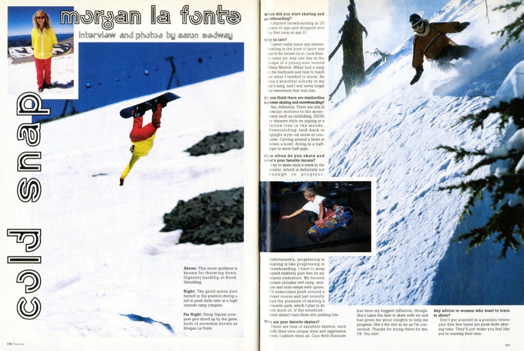 It’s the Winter Olympics and I can’t help but think of all the amazing female snowboarders from decades past like Morgan LaFonte, who also happened to be an awesome skateboarder!